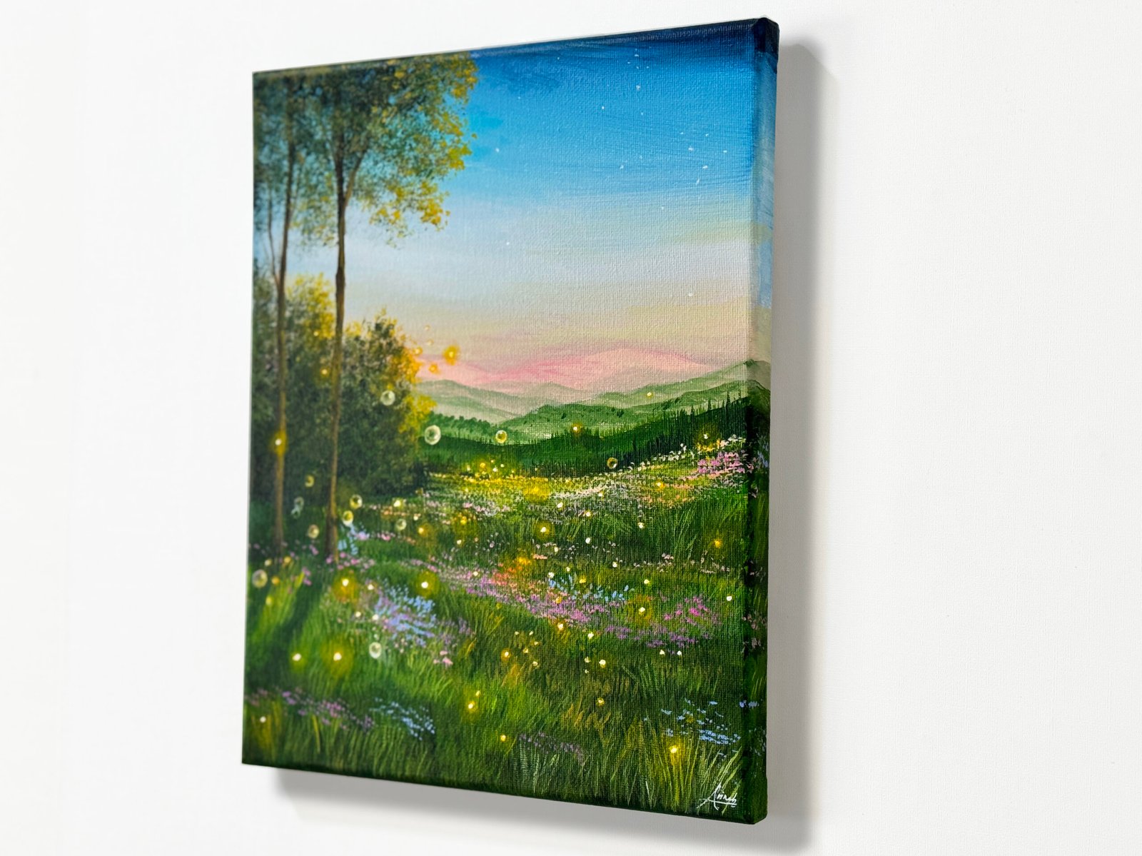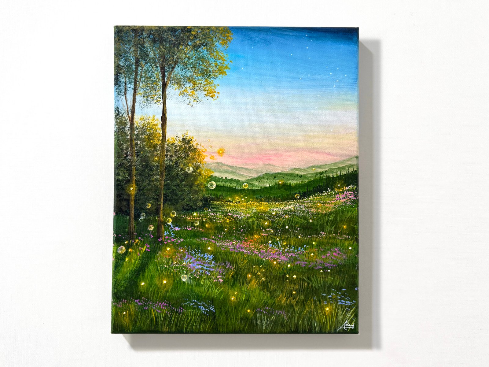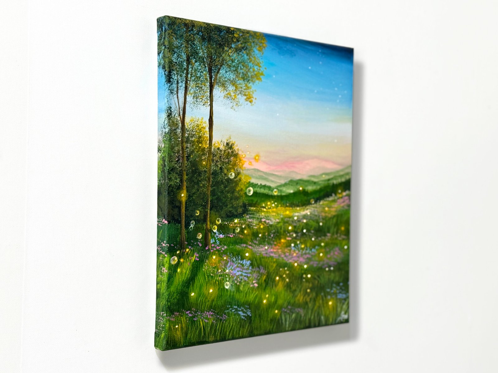 “Dusklight” is the last piece from the Reverie series. It captures the moment when the wanderer, following the floating bubbles, discovers a field of fireflies at dusk. The sun is almost gone, and she feels enchanted by the beauty around her. Looking ahead, the dreamy world seems endless. But in her heart, she wonders;should she continue the journey, wake up from the dream, or stay here a little longer?